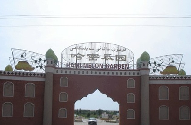 哈密市花園鄉(xiāng)喀拉塔勒村的“哈密瓜園”,占地面積18511.5畝,距哈密市區(qū)17公里。哈密瓜園分5個大區(qū),分別為入口區(qū)、瓜園區(qū)、水上樂園、百果園休閑娛樂區(qū)和自然(戈壁)風景觀光區(qū)。入口區(qū)主要有烽火臺、瞭望塔、瓜園大門、哈密瓜展廳、駝馬客棧、南湖館驛、文化墻、停車場等相關配套設施,總占地70000平方。瓜園區(qū)主要有哈密瓜種植區(qū)、品嘗區(qū)、葡萄長廊觀光等景點,總占地面積3873.1畝。