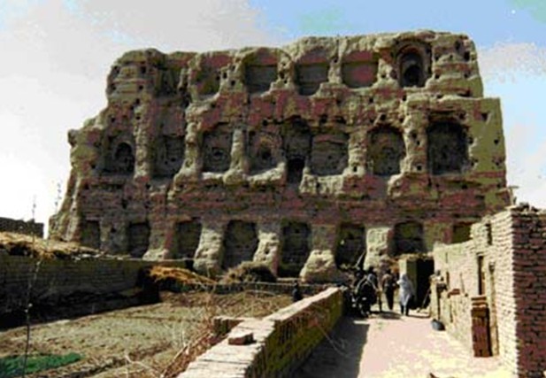 臺藏塔的始建年代為公元6~7世紀(jì)(麹氏高昌時期),是當(dāng)時著名的佛教遺址。14世紀(jì)末,察合臺汗國統(tǒng)治者強(qiáng)迫高昌地區(qū)的居民信奉伊斯蘭教之后,臺藏塔逐漸毀破。塔東面與北面均有佛教洞龕。西面塔壁中有洞,貫穿墻壁,作用不明;南壁己毀,由于距高昌故城較近,又是高昌王國佛教建筑, 充分反映了高昌時期佛教的興盛。