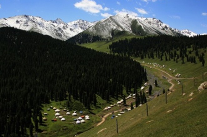 這是一處以生長(zhǎng)大片金黃色菊花為特色的哈薩克草原牧區(qū)景觀旅游區(qū)。它位于西白楊溝的西側(cè),為一緩坡傾斜的洪積扇臺(tái)面,海拔2000~2400米。春夏季節(jié),臺(tái)面上菊花金黃,百花爭(zhēng)艷,蜂蝶紛飛,一派典型的天山草原風(fēng)光。菊花臺(tái)東側(cè)的中梁臺(tái)上建有與國(guó)際觀察水平接軌的中科院烏魯木齊天文臺(tái),我國(guó)最大的直徑25米的射電天文望遠(yuǎn)鏡。