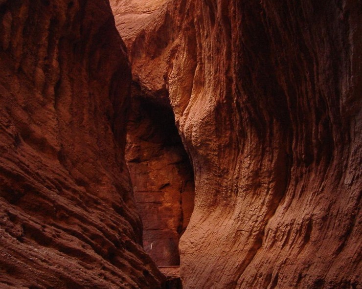 大峽谷近似呈南北弧形走向,開(kāi)口處稍彎向東南,末端微向東北彎曲,由主谷和七條支谷組成,全長(zhǎng)5000多米,谷端至谷口處自然落差200米以上,谷底最寬53米,最窄處0.4米,僅容一人低頭彎軀側(cè)身通過(guò)。谷側(cè)奇峰嶙峋,爭(zhēng)相崛起;峰巒疊嶂,劈地摩天,崖奇石峭,磅礴神奇;神洞秘窟,各蘊(yùn)其意。谷內(nèi)蜿蜒曲折,峰回路轉(zhuǎn);步步有景,舉目成趣;泉水叮咚,鳥(niǎo)叫蟬鳴,寒暑不浸,游人稱絕。整個(gè)峽谷猶如一條尾震天山頭,口飲庫(kù)河流(開(kāi)口于庫(kù)車河),曲身九十九的巨龍劈山而臥,呼風(fēng)喚雨,神秘莫測(cè)。更令人稱奇的是,距谷口1400米深處,高約35米的崖壁上,有一始建于盛唐時(shí)期,壁畫(huà)丹青的千佛洞遺址,就文字記載和繪畫(huà)藝術(shù)而言,在古西域地區(qū)至今已發(fā)現(xiàn)的300多座佛教石窟中絕無(wú)僅有,實(shí)屬罕見(jiàn)。無(wú)山不成谷,峰奇谷更幽。峽谷區(qū)域平均海拔1600米,最高山峰2048米。組成峽谷的奇峰群山由赭色的泥質(zhì)沙巖構(gòu)成,當(dāng)?shù)鼐S吾爾語(yǔ)叫做“克孜利亞”,即紅色的山崖。神秘大峽谷正處在當(dāng)今中國(guó)九大影視基地之一的克孜利亞勝景中。龐大的紅色山體群形成于距今1.4億年前的中生代的白堊紀(jì),經(jīng)億萬(wàn)年的風(fēng)剝雨蝕,洪流沖刷,形成縱橫交錯(cuò),層疊有序的垅脊與溝槽,遠(yuǎn)看如詩(shī)如畫(huà),狀若“布達(dá)拉宮”,仙天瓊閣;近瞧若人似物,如夢(mèng)似幻,惟妙惟肖,神韻萬(wàn)端。令人有鬼斧神工,奇景天成之慨嘆。尤以谷口處的三座山體(乃頭山、麗人山、佛面山)最為壯觀。特別在夕陽(yáng)斜射,朝霞映山,極目遠(yuǎn)眺,色艷紅天。大有不是火焰山,勝似火焰山之奇感。