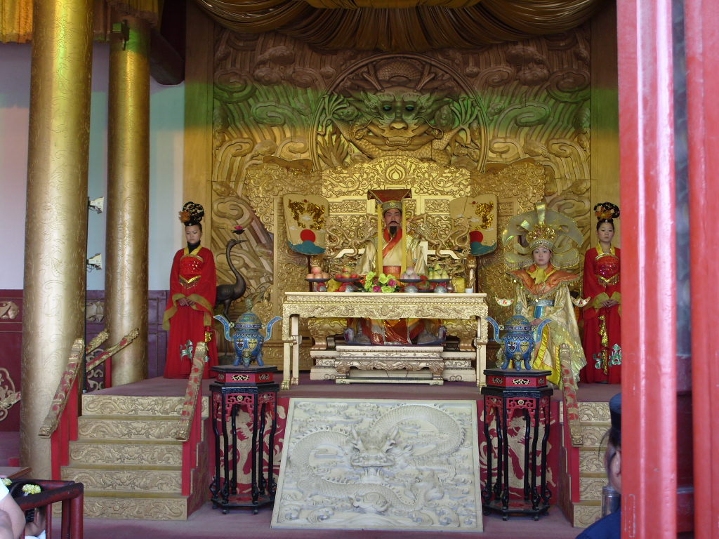 龍亭是古城開(kāi)封的一個(gè)著名游覽點(diǎn),也是開(kāi)封文物古跡的一個(gè)代表。其實(shí),這不是亭,而是建筑在一座高達(dá)13米的巨大青磚臺(tái)基之上的殿堂。龍亭坐北朝南,高踞在臺(tái)基之上。從地面到大殿有36丈高,代表36天罡;72級(jí)臺(tái)階,代表72地煞。臺(tái)階中間是雕有云龍圖案的石階。登上平臺(tái),四周有石欄圍繞。大殿是木結(jié)構(gòu),重檐歇山式建筑,很壯觀。
