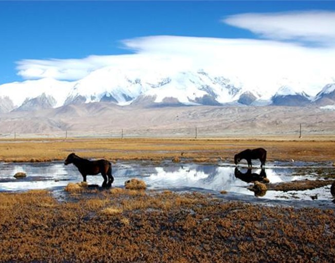 和田河是唯一從塔克拉瑪干沙漠腹地穿過的河流,全長1127公里,其上游由兩條支流構(gòu)成,一條是玉龍喀什河,一條是喀拉喀什河,均發(fā)源于昆侖山,兩河在闊什拉什匯合后始稱和田河,和田河下游為典型的平原游蕩型河流,河床寬淺,河流曲折婉蜒,多心灘、邊灘,以灰楊、胡楊為主的天然林沿河兩岸呈帶狀分布,野生動物時常出沒。