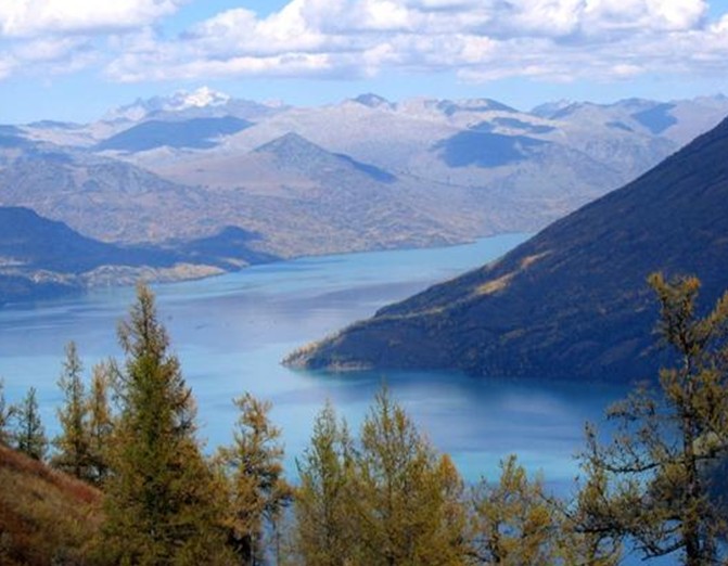 湖面呈北西向狹長(zhǎng)的彎月?tīng)钫共?,長(zhǎng)約13km,寬1~3km,面積約9.3km2,最大湖深7.5m,平均湖深2.0m,容積約4.0×107m3。由8個(gè)小湖泊相連組成,湖水為無(wú)色透明的淡水,礦化度1~2g/L,PH值8。湖水夏季水溫17℃,冬季結(jié)冰,最厚處40cm。湖區(qū)年平均氣溫9.9℃,1月平均氣溫-9.0℃,極端低溫-27.6°C,7月平均氣溫 23.8℃,極端高溫40.7℃,年降水量60.8mm,蒸發(fā)量1896.5mm。主導(dǎo)風(fēng)向西北,最大風(fēng)速20m/s。每年12月初湖水開始結(jié)冰,解凍期為翌年3月中旬。5月初至 10月底為旅游季節(jié)。