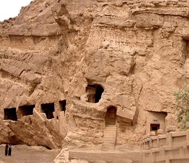 庫木吐拉千佛洞:約5 ~11世紀佛教石窟寺。開鑿在新疆庫車縣城西北30公里的渭干河谷的東岸,是僅次于克孜爾石窟的古龜茲較大的石窟群。庫木吐拉系維吾爾語譯音,意為“沙漠中的烽火臺”?,F(xiàn)有洞窟112個,分為南區(qū),北區(qū),丁谷山峽谷區(qū)三部分。庫木吐拉千佛洞開鑿的時間從兩晉,經隋唐,延續(xù)到宋代。