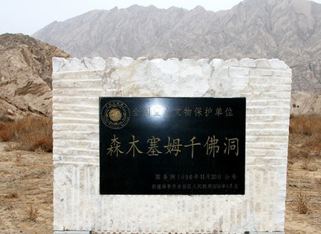 森木塞姆千佛洞屬全國重點文物保護單位,位于中國西北部新疆維吾爾自治區(qū)的庫車縣,是一處晉代至宋代(公元4~10世紀(jì))的佛教石窟群遺址。森木塞姆千佛洞主要分布于卻勒塔格山口直徑約800米范圍內(nèi)的山崖上。石窟大部分已經(jīng)遭到破壞,目前保存較為完整的有57座。洞窟分布在馬蹄形的山谷里,按地理位置可分為東、南、西、北、中五個區(qū),現(xiàn)有編號洞窟57個。