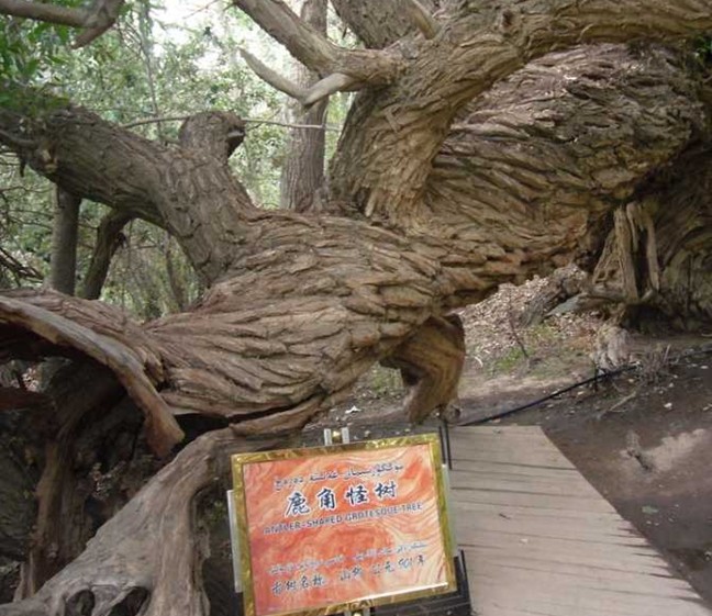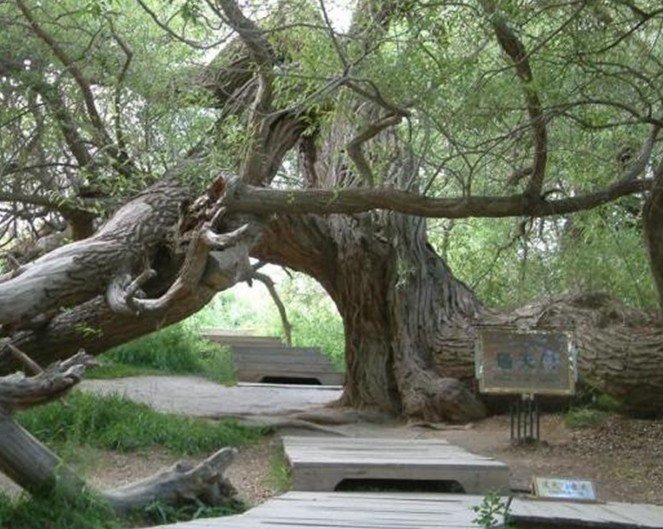 神木園其實是一處古墓地,它的原始名字叫庫爾米什阿塔木麻扎。在溫宿縣地圖上西北邊的一條公路兜住的那三個小圓點,就是新疆聞名遐邇的天山神木園的標注。溫宿縣志•卷二十七•第五章第四節(jié)古墓葬中對此記載如下:庫爾米什阿塔木麻扎位于薩瓦甫牧場場部東北10.7千米。地理坐標:東經79°42′26″,北緯41°35′32″。面積680畝,海拔1700米,尚存古墓數(shù)十座。相傳公元11世紀,沙特阿拉伯的一名叫蘇力塔庫爾米什賽依德的伊斯蘭教阿訇,帶領兩千名教徒,經印度到中國傳教,受到當?shù)厝说牡种撇l(fā)生沖突。敗退至此地時,大部分教徒戰(zhàn)死,蘇也陣亡,便埋葬在這里,形成了一個占地頗大的麻扎。其中呈圓形的最大的一個是蘇的墳墓,雖年久失修,確仍保持著穆斯林古老墓式。麻扎四周為戈壁荒丘,內卻以草綠、樹怪、泉多而聞名遐邇。該麻扎高出地面50米,滿山遍野長滿了綠草,山地像披上了一張綠色的地氈。草地里有10余處泉頭,泉水淙淙,從草地穿行而過,樹形千姿百態(tài),有的似神龍游動,屈折盤旋,貼地而伸:有的樹高達96。23米;有的樹枝與根部相連,分不出那是枝,哪是樹根。很多樹都是百年以上的老樹,版權所有山東聊城聊之旅國際旅行社有限公司,轉載必究!有的老樹倒地后又從根部發(fā)出新枝,長成參天大樹。庫爾米什阿塔木麻扎,既是穆斯林朝拜圣地,又是風景勝地,每年到這里朝拜、旅游者達萬余人次。為保護這一勝地,1986年縣財政拔款4萬元,群眾捐款十多萬元,對麻扎清真寺進行了修繕,并建筑了磚圍墻和架設了鐵刺圍欄。1989年11月,阿克蘇地區(qū)文物管理所普查隊來此地考查,被定為縣級文物保護單位,縣有關單位派有專人管理。麻扎東南20米處有一古墓群,計十余座,尚未發(fā)掘考察。這是1993年7月出版的溫宿縣志記載。從志書考證,神木園曾是一片處女地。公元11世紀,蘇力塔庫爾米什及其2000名教徒傳教殉職葬于此地后,當?shù)厝艘詭鞝柮资舶⑺韭樵鸀榇说孛?。如今那個古老的命名也只能從志書中去搜尋考證了。
