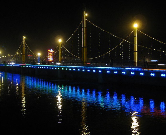 孔雀河橫穿庫爾勒市區(qū),把庫爾勒市分為南北兩半,北面以州市地方單位為主,南面以塔里木勘探開發(fā)指揮部及石油單位為主。在市區(qū)長達七公里的孔雀河上共有五座橋,有孔雀河大橋、獅子橋、建設橋、團結(jié)橋等。上游的孔雀河大橋是314國道跨越孔雀河上目前最大的橋梁,橋跨150米,寬24。5米,是我國西北地區(qū)最大的一處拱形鋼橋,河面無橋墩,它是孔雀河在庫爾勒市區(qū)的一處重要景觀,是孔雀河濱風景旅游帶上一道獨特風景線。近些年庫爾勒市從實際出發(fā),利用孔雀河穿城而過的優(yōu)勢建設了孔雀河風景旅游帶工程。風景帶基礎設施完善,綠草如茵、鮮花怒放、景色宜人,成為市區(qū)一道亮麗的綠化美化線和旅游風景線。一方水土,因風雅而美麗;一座城市,因歷史的積淀和教養(yǎng)而文明。版權(quán)所有山東聊城聊之旅國際旅行社有限公司,轉(zhuǎn)載必究!現(xiàn)在的孔雀河市區(qū)段玉水如帶,百步一景。清晨,薄霧輕紗,爽氣怡人;晚間,夕陽鋪水,依稀將人帶入夢中仙境。早晨鍛煉身體的人在這里吐故納新,采天地之精華;傍晚,休閑的人們在這里納涼散步,觀夜景之妙。如潮的人流摩肩接踵,使孔雀河畔洋溢出一種節(jié)日的氣氛。