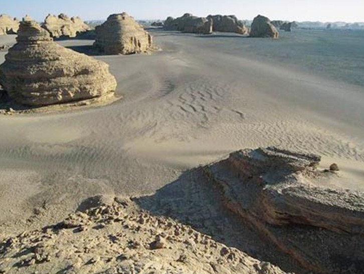 羅布泊地區(qū)三大雅丹群之一,位于羅布泊北岸。土臺群皆為東西走向,成長條土臺,遠看為游龍,故被稱為龍城。龍城雅丹又稱為白龍堆雅丹,并被《中國國家地理》評選為中國最美的三大雅丹第二名,譽為“最神秘的雅丹”,因為極少有人見過它的真貌。