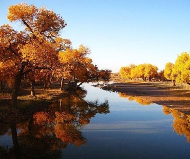 該森林公園位于塔里木胡楊保護(hù)區(qū)的核心部位,版權(quán)所有山東聊城聊之旅國際旅行社有限公司,轉(zhuǎn)載必究!地跨輪臺和尉犁兩縣交界處世哲的塔里木河中游河汊區(qū)域。由沙漠公路0千米前行駛13千米向東拐向一條筆直的石油公路。沿該路東南行沿途沙地中不時(shí)出現(xiàn)成簇、成片的胡楊風(fēng)景林,這里的胡楊樹粗壯、胸徑一般在60~80厘米,粗的可達(dá)1米,并常見有二三棵胡楊連體生長在一起的,其直徑粗達(dá)成1。6米左右,樹高一般5~8米,高者可逾10米。胡楊樹一般間距在20米左右,成簇生長的樹距只有3~4米。進(jìn)得公園正門,首先映入眼簾的是3株合抱不交的古老的胡楊樹,游人無不在此駐足留步,下去瞻仰這3株奇特的樹。它們樹干內(nèi)部已空,而樹冠卻依然枝繁葉茂,投下大片綠蔭,遮去了似火的焦陽,人一看到這3株奇特的樹,就先來了精神,給人無限的飛夢,感到它才是生命之本,才是幻化的靈魂。3株奇樹左邊是一湖碧水,這是塔里木河自然瀉洪形成的一個(gè)小湖。近幾年,森林公園開辟后,來了4只白天鵝,以后又有數(shù)只飛來,它們一來就相中了這個(gè)地方,即使在冬季,也不肯離去,夏天在水中游戲,引頸放歌,冬日與人類共歡。湖水的周邊都是茂密的胡楊林,游人可在岸邊垂釣,湖中的魚之多,不時(shí)可釣出大鯉魚、黃花魚。公園的前邊野豬林,真正的野豬已早被嚇得逃遁了。你走進(jìn)密林深處,卻有野羊、野鹿、野狐、野兔出沒其間,野草野花惹歡逗奇,野樹野果直撞人頭,野氣野味意味無窮,茂密的森林,往往使人望而卻步,高大的胡楊會使你爬上它的高枝,望遠(yuǎn)塔克拉瑪干大沙漠,森林和大漠的風(fēng)光頓時(shí)使你也野了。公園的右邊野鹿林無比的真,這里一切都是真的,真花真草,真樹真鹿,在都市里是無法看到的,幾個(gè)亭榭雖有雕琢的痕跡,但被它的真而溶化,在干旱沙漠腹地出現(xiàn)了這世外桃源,老樹抽新綠,新樹遍地長,野鹿和鳴,蝶飛蜂舞,你仿佛要返撲歸真,也想進(jìn)入這森林中居住。在公園的東邊有一處西漢時(shí)期的墓葬,據(jù)考證,是漢朝官兵在此積谷屯田之時(shí)的遺跡,雖經(jīng)兩千多年變遷,但依然可以看出墓葬的規(guī)模。雖然幾百年前有盜掘的痕跡,但是依然保持了墓葬的原貌。沙漠胡楊林公園占地4.5平方公里,于1997年開園。隨著塔里木石油勘探開發(fā),無數(shù)的石油人日夜沐浴干旱風(fēng)沙,非常需要一個(gè)美好的憩息之地,休閑之地。由此石油人成了公園的常客,外籍員工對其更感興趣,輪臺、庫車、庫爾勒、喀什、烏魯木齊和不少的中外游客,版權(quán)所有山東聊城聊之旅國際旅行社有限公司,轉(zhuǎn)載必究!都千里迢迢地領(lǐng)略這大漠森林風(fēng)光。