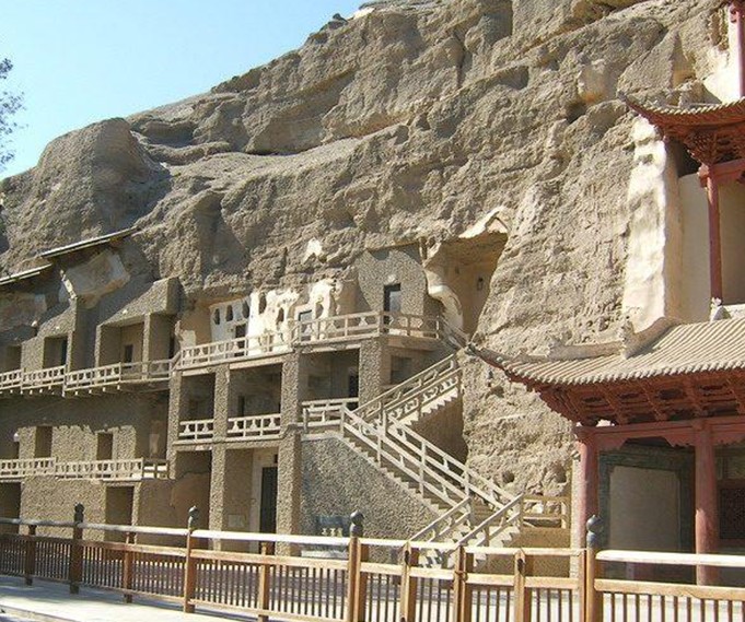 洞窟的形制主要有兩種,一種為縱卷頂單室窟,二是有前后二室的支提窟,前窒為縱卷頂,左右開(kāi)通道,通道后為橫卷頂,隧道狀后重,前窒與后室間的中心柱是長(zhǎng)方形,窟形與克孜爾千佛洞相似。而1、2、3號(hào)窟的中心柱又是扁的,窟頂繪出的朵云紋、纏枝蓮花紋與敦煌莫高窟晚唐五代,宋初的石窟形制相同,版權(quán)所有山東聊城聊之旅國(guó)際旅行社有限公司,轉(zhuǎn)載必究!而7號(hào)和9號(hào)殘余壁畫(huà)有菱形方格紋,開(kāi)創(chuàng)時(shí)期與二三期石窟相同,即在西晉與隋代之間。在錫克沁千佛洞1公里處,有一處“七個(gè)星明屋”,明屋是維吾爾語(yǔ)“千間房”之意,這兒是一處頗具規(guī)模晉唐兩代的佛寺遺址。古寺散建在沙灘和坡地上,有殿堂、廟宇、僮房、佛塔共大小建筑93處,均為土坯砌筑,現(xiàn)僅存基礎(chǔ)部分,佛寺分南大寺和北大寺兩部分,一條較寬的泉溝將南北大寺分開(kāi)。南大寺前后的兩個(gè)大殿為中心建筑,前殿較大,長(zhǎng)23米,寬21米,大殿前有數(shù)座六角形基座的塔,高大的臺(tái)基上,有類(lèi)似大明宮的建造模式,殿兩側(cè)及背后均建有通道,殿前正中建塔,塔東南有嘹望臺(tái),殿西北有六角形基地亨廬頂式塔,左右及后部有僧房小殿堂式建筑.北大寺由并列的3所大殿組成,建造模式與南大寺相仿,殿前山門(mén)東西兩側(cè)有土臺(tái)高約10米,為當(dāng)時(shí)的鐘樓遺址,西側(cè)土臺(tái)與山門(mén)之間有4個(gè)支提式窟,另外在中大殿和東大殿后面,有6個(gè)土塔遺址,塔基各邊有6角形壺門(mén),并有方形塔院,北大寺建筑雖大多頹廢,但仍可看出原有的規(guī)模。