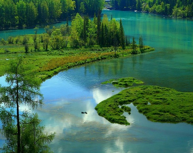 喀納斯自然景觀保護(hù)區(qū)位于布爾津縣境內(nèi),布爾津河源頭地帶,距阿勒泰市西北265多公里處,面積5588平方公里。自然保護(hù)區(qū)以喀納斯湖為中心,主要為保護(hù)野生動(dòng)物及其生態(tài)環(huán)境。喀納斯蒙古語(yǔ)意“美麗而神秘”,地處新疆阿爾泰山中部的布爾津縣境內(nèi),與蒙古、俄羅斯、哈薩克斯坦三國(guó)交界,面積兩千多平方公里,是國(guó)家級(jí)自然保護(hù)區(qū)。一位聯(lián)合國(guó)環(huán)境保護(hù)官員說(shuō):“喀納斯是當(dāng)今地球上最后一個(gè)沒(méi)有被開(kāi)發(fā)利用的景觀資源,開(kāi)發(fā)它的價(jià)值在于證明人類(lèi)過(guò)去那無(wú)比美好的棲身地。”喀納斯湖為復(fù)合冰川融匯而成,湖面海拔1374米,湖長(zhǎng)25公里、最深176米,版權(quán)所有山東聊城聊之旅國(guó)際旅行社有限公司,轉(zhuǎn)載必究!湖周植物茂密,是魚(yú)類(lèi)和水禽棲息繁衍的理想場(chǎng)所。湖四周雪峰聳峙,綠坡墨林,艷花彩蝶,湖光山色,美不勝收??{斯湖是我國(guó)唯一的南西伯利亞區(qū)系動(dòng)植物分布區(qū),生長(zhǎng)有西伯利亞區(qū)系的落葉松、紅松、云杉、冷杉等珍貴樹(shù)種和眾多的樺樹(shù)林、已知有83科298屬798種。有獸類(lèi)39種,鳥(niǎo)類(lèi)117種,兩棲爬行類(lèi)動(dòng)物4種,湖中魚(yú)類(lèi)7種,昆蟲(chóng)類(lèi)300多種。馬鹿、貂熊、雪豹、雪兔、紫貂、石貂、巖雷鳥(niǎo)、林蛙等珍稀動(dòng)物在此出沒(méi)。湖中有哲羅鮭、細(xì)鱗鮭、北極煙、江鱈、西伯利亞齒鳊等冷水魚(yú)。許多種類(lèi)的花木鳥(niǎo)獸在全疆乃至全國(guó)都是絕無(wú)僅有的。喀納斯自然保護(hù)區(qū)自然風(fēng)光秀美,地貌奇特,在海拔4000多米的友誼峰下,有現(xiàn)代冰川和永久凍土帶。雪線下有古冰川遺跡和明顯的羊背石。盛夏,在一天之內(nèi),可以領(lǐng)略到春夏秋冬四季風(fēng)光。高處的阿勒泰峰,銀裝素裹,儼然北國(guó)寒冬。中山帶則是松林蒼蒼,秋高氣爽。低山帶千里光、百里香等盛開(kāi)的山花,似雨后彩霞,萬(wàn)紫千紅,彩蝶紛飛。山下喀納斯湖邊,碧波蕩漾、海鷗鳴叫??{斯為避暑和游覽勝地,主要的景點(diǎn)有喀納斯湖、月亮灣、臥龍灣、圖瓦人村落等。