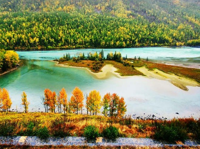 臥龍灣,是由喀納斯河在此長(zhǎng)期側(cè)蝕沖刷而形成一連串岸線曲折的河灣組成。河流在此,流速減緩,水面柔波浮動(dòng)。在Ω形河灣兩側(cè)發(fā)育兩個(gè)半島狀平臺(tái),河曲上為月牙形平臺(tái)。河灣內(nèi)發(fā)育兩個(gè)小心灘,像兩個(gè)巨大的腳印。版權(quán)所有山東聊城聊之旅國(guó)際旅行社有限公司,轉(zhuǎn)載必究!傳說是神仙也難以抗拒美景的誘惑,下凡賞景時(shí)所留。下游為臥龍灣平臺(tái),長(zhǎng)800米,寬450米,面積3.6萬(wàn)平方米。登上東側(cè)公路旁海拔1500米處的側(cè)磧平臺(tái),俯視Ω形河曲全景,恰似一條蛟龍盤臥嬉水,臥龍灣由此得名。