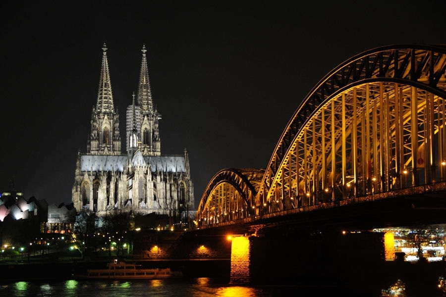 這座高157.38米,花費(fèi)16萬(wàn)噸石頭,歷時(shí)632年才建成的世界上最偉大的哥特式建筑,足以讓任何人對(duì)科隆這座城市肅然起敬,為科隆市民的頑強(qiáng)和永不停息的奮斗精神所折服。腳下踩著德意志大橋堅(jiān)實(shí)而樸素的鋼梁,橋下是萊茵河靜靜的流淌,遠(yuǎn)望大教堂直入云端的尖頂,我感悟到這就是德意志精神所在——堅(jiān)強(qiáng)、追求、深邃。迎面吹來(lái)涼爽的風(fēng),我慢慢閉上眼睛,用心去感受此刻異國(guó)他鄉(xiāng)靜謐與神圣。腦海卻浮現(xiàn)出穿制服的黨衛(wèi)軍的來(lái)回走動(dòng)、集中營(yíng)里鐵絲網(wǎng)后猶太兒童恐懼的眼神……而后隆隆的炮聲從耳邊響起,科隆籠罩在火光中,萊茵河上巨響后升起的水柱直沖大橋的橋身…….日耳曼,這是怎樣一個(gè)民族???