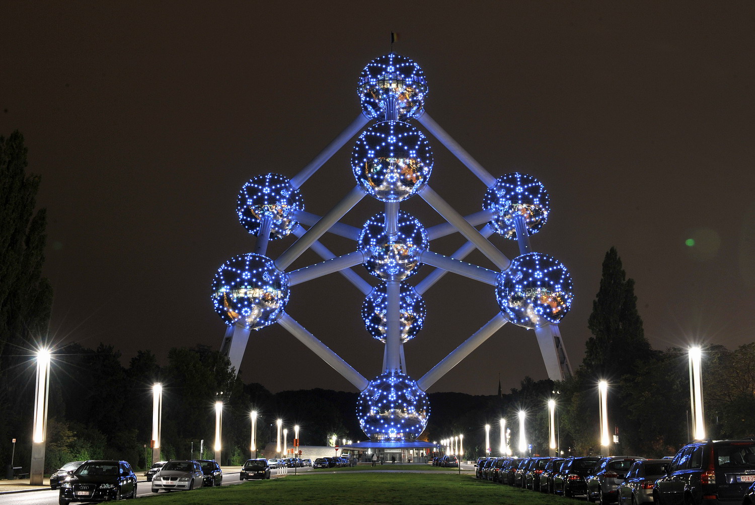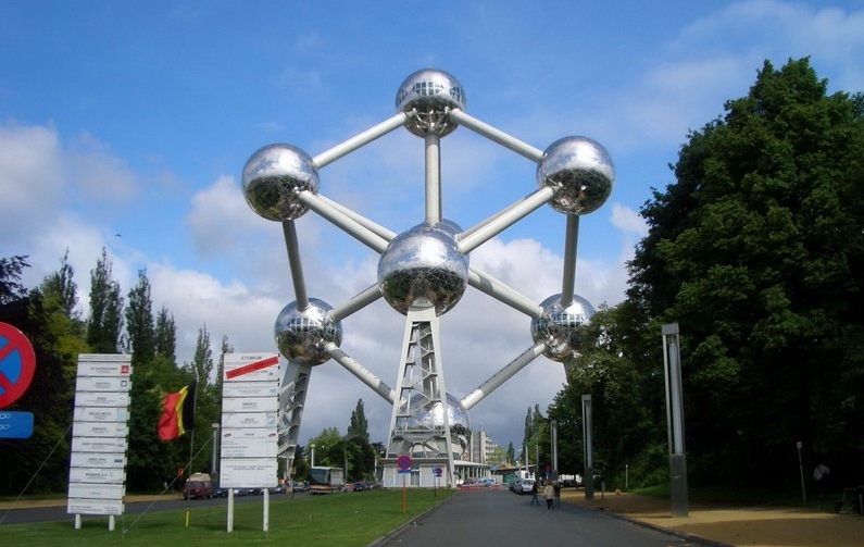 原子球 為比利時1958年在此地的展覽中心舉辦的布魯塞爾博覽會所設計的標志建筑。設計者希望通過這一巨大的建筑表達微小的原子概念,并顯示人類和平利用原子的前景。構(gòu)思來源于原子結(jié)構(gòu)圖,九個巨大的金屬圓球由粗大的鋼管連接構(gòu)成一正方體圖案。版權所有聊城聊之旅國際旅行社有限公司,轉(zhuǎn)載必究!正方體的大小相當于放大了1650億倍的鐵的正方體晶體結(jié)果。八個圓球位于正方體的八個角,另一個圓球位于正方體的中心。圓球直徑18米,連接各個球間的鋼管每根長26米,直徑3米??傊?200噸,高102米??沙穗娞莸竭_離地100米高的頂端圓球觀賞布魯塞爾的風景。其他圓球中為各種主題的科技展覽廳。分別陳列有太陽能、和平利用原子能、航天技術、天文等方面的展品,以及有關比利時氣象事業(yè)的發(fā)展史、衛(wèi)星氣象、氣象雷達、氣象通訊方面的圖表。