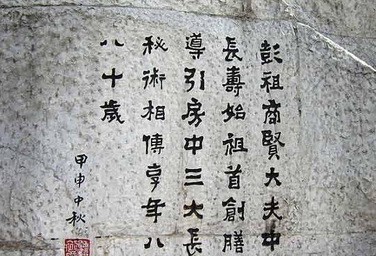 北魏酈道元《水經(jīng)注》“獲水”條云:(彭城)城之東北角,起眉樓於其上,號(hào)曰彭祖樓?!兜乩碇尽吩?,彭城縣,古彭祖國(guó)也?!妒辣尽吩?,陸終之子,其三曰籛,是為彭祖。彭祖城是也。下曰彭祖冢。彭祖長(zhǎng)年八百,綿壽永世,於此有冢,蓋亦元極之化矣!