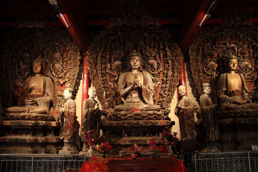 水陸庵原名水陸殿,為六朝古剎,國家級重點文物保護單位,以保存古代精巧罕見的彩塑而聞名,被譽為“中國第二敦煌”。是國內(nèi)目前保存最大的壁塑群。壁塑群把繪畫、圓雕、浮雕、樓刻藝術(shù)手段容為一體,在墻、梁、柱上鑲滿了三千七百多尊人物及自然界萬物的塑像。