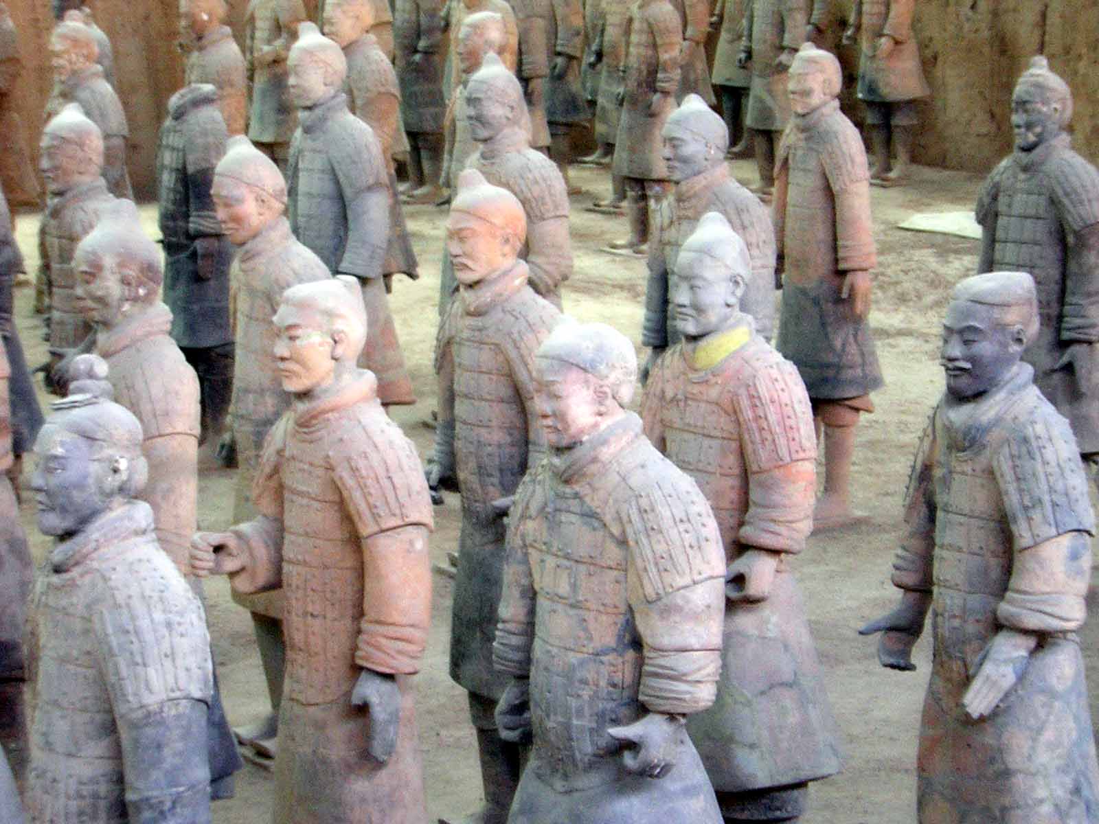 秦唐藝術(shù)室陳列有1974年最先出土的秦兵馬俑,被專家們稱之為世界第八大奇跡再世的先遣兵士,它們的問世,揭開了2000多年前秦始皇帝陵地下神秘兵陣布局的序幕,為世人研究秦代軍事、文化、提供了寶貴的歷史史料。
