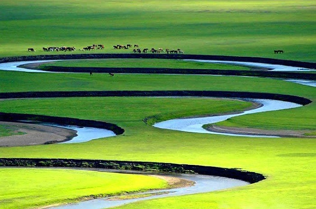 在蒙古語中“呼和諾爾”意為“青色的湖”。草原內(nèi)有許多大大小小的河流湖泊,其中呼和諾爾湖景色最佳,湖面四周綠草如茵,湖水清澈潔凈,猶如一顆閃亮的明珠。