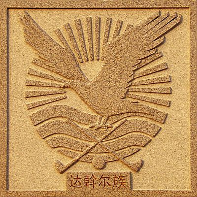 民族園東邊有一個半徑45米的圓形休閑廣場,廣場中央矗立著高大的民族圖騰圓柱,柱身四周塑有達(dá)斡爾族曾崇拜的原始圖騰物和人們生產(chǎn)、生活的歷史場景,畫面精美、歷史感強(qiáng)、民族特色鮮明。柱頂有一只雄鷹(海東青)昂首振翅,搏擊長空,意寓勤勞、勇猛、智慧的達(dá)斡爾族及莫力達(dá)瓦人在向著美好的未來奮力騰飛。環(huán)繞圖騰柱的是反映達(dá)斡爾歷史上生產(chǎn)生活中使用的大輪車、弓箭、搖籃、神鼓等器物和人們飼養(yǎng)的羊、狗等。廣場上兩面達(dá)斡爾族歷史文化墻,版權(quán)所有山東聊城聊之旅國際旅行社有限公司,轉(zhuǎn)載必究!藝術(shù)地再現(xiàn)了達(dá)斡爾族的歷史神話傳說、生產(chǎn)、生活、文體活動等場面。