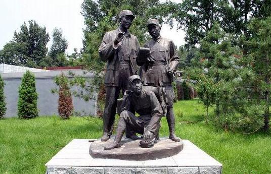 室外雕塑區(qū)位于展覽館的后廣場(chǎng),設(shè)有六組雕塑:聶榮臻和美穗子,鄧拓、沙飛與新聞戰(zhàn)士,李勇和爆破組,戎冠秀與受傷戰(zhàn)士,國(guó)際友人白求恩,狼牙山五壯士,這些雕塑作品從不同側(cè)面反映了晉察冀根據(jù)地的特點(diǎn),加深了觀眾印象。