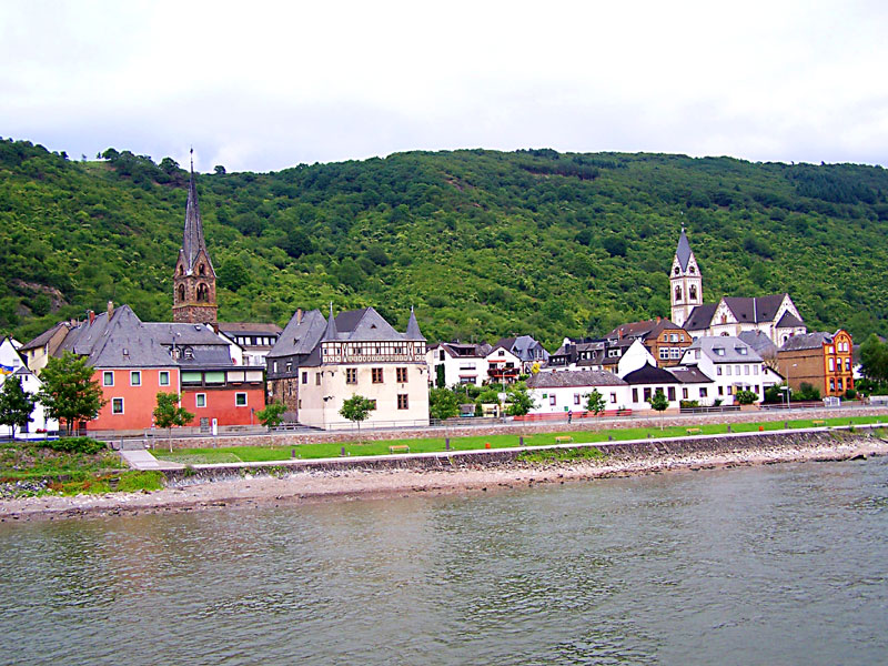 萊茵河谷位于萊茵河的中上游段。從賓根開始,對岸就有呂德斯海姆小鎮(zhèn)和享有“紅葡萄酒之鄉(xiāng)”美譽(yù)的阿斯曼豪森小鎮(zhèn),兩鎮(zhèn)間山頂上有紀(jì)念德意志統(tǒng)一的尼德瓦爾德巨大紀(jì)念雕塑和山下的阿倫費(fèi)爾斯古堡廢墟。這里標(biāo)志著中萊茵河谷上游的開端,相當(dāng)于長江三峽的夔門峽口。
