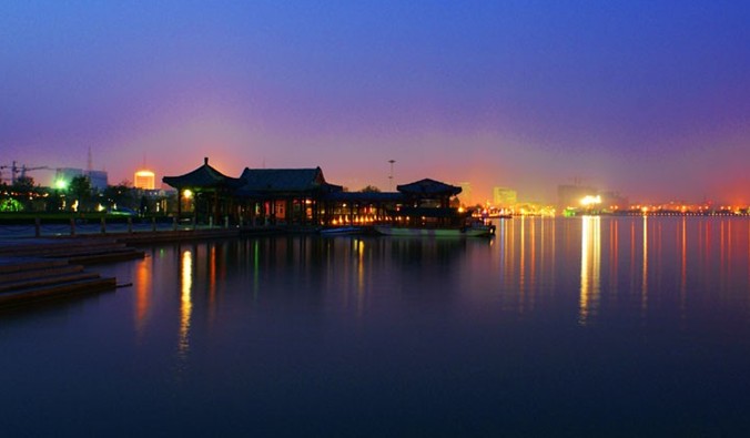 東昌湖始建于宋熙寧三年(公元1070年),在原護(hù)城河的基礎(chǔ)上經(jīng)歷代開挖而成,現(xiàn)有水域4.2平方公里,為中國江北地區(qū)罕見的大型城內(nèi)湖泊。東昌湖引黃河水為源,常年水深3-5米,湖水清澈,無任何工業(yè)污染;景色宜人,令游客流連忘返。東昌湖中心是已有千年歷史的1平方公里的正方形聊城古城。古城風(fēng)貌保存完好,以古城正中的光岳樓為中心,向四面輻射,形成東西南北四條古城區(qū)干道,其它大街小巷,也都是經(jīng)緯分明,垂直交叉,形成棋盤方格網(wǎng)狀骨架。