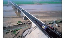 包頭黃河大橋位于市南郊,它是從包頭市白云鄂博到陜西等省通衢的重要組成部分。大橋全長810米,主孔12孔,每孔跨徑為65米,橋面寬12米,下部由14墩臺(tái)組成,上部構(gòu)造為預(yù)應(yīng)力鋼筋混凝土箱式連續(xù)梁,采用最新工藝多點(diǎn)頂推法施工。