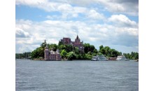 北美洲安大略湖的湖水流出注入圣勞倫斯河,在圣勞倫斯河河灣有大小天然島嶼1865個,人工島嶼1個,被稱作千島湖,又叫圣勞倫斯群島國家公園。有人說加拿大把露出水面1平方米且有一棵樹的地方稱為島。湖(河)中心的分界線將千島湖一分為二,南岸是美國的紐約州,北岸則是加拿大的安大略省。2/3島嶼在加拿大境內(nèi),而美國擁有的島嶼大都面積大并有深水水道通往大湖。