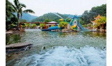 在中國(guó)第一個(gè)溫泉之鄉(xiāng)——恩平市,有一座被環(huán)嶺群峰擁抱著的溫泉山,山下的三十多處自噴溫泉,日流量為6000立方米,其溫泉水溫高達(dá)73℃,水質(zhì)晶瑩幼滑,并含有偏硅酸、氟、氫、硫等多種有益于人體健康的元素,是世界少有的滑溫泉,這就是帝都溫泉。