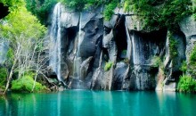 綠淵潭綠淵潭位于吉林省長(zhǎng)白山國(guó)家自然保護(hù)區(qū),因池水碧綠深窘而得名。綠淵潭瀑布飛流直下,最高落差達(dá)26米,瀑水落于巨石而四漸,而后流入深潭。每逢霧起,潭上水霧彌漫,與高山岳樺、曠古巨石渾然而一體,美不勝收,恰似人間仙境。