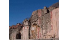 經石峪金剛經刻位于斗母宮東北經石峪,是中國現(xiàn)存規(guī)模最大的佛經摩崖刻石。 經文刻于面積2064平方米的緩坡石坪上,自東而西刻《金剛般若波羅密經》,采用后秦鳩摩羅什譯本,原本全1卷、32分目、5172字,經刻只刻到15分目“特經功德 兮”,計44行,每行125字或10字不等,凡2799字,字徑50厘米。經刻歷千余年風 雨剝蝕、山洪沖擊、游人踐踏、捶拓無度,已殘泐磨滅過半,現(xiàn)僅存經文41行、 1069字(包括可認讀的殘字和雙勾字)。