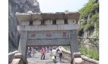 升仙坊位于山東省泰山中路緊十八盤的起始處,為兩柱單門式石坊,額題楷書“升仙坊”。此處山勢陡峻,懸崖峭壁,上臨岱頂天庭,咫尺仙境,似有飄然升仙的意境,故名“升仙坊”。游人至此小憩,每每浮想聯(lián)翩?;匾暽较?,常有騰身云霄之感,舉首仰望,南天門近在眼前,奮力攀登,岱頂在望。 升仙坊位于南天門下。全石雙柱單門式,寬2.82米,通高4.5米,建于雙層方 石基上?;L1.82米,寬0.64米,高0.5米。柱方形,下施滾墩石,獸頭石鼓狀。