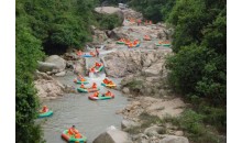 臺(tái)山北峰山漂流位于古兜山省級(jí)自然保護(hù)區(qū)內(nèi),省級(jí)森林公園原始峽谷之中,漂流河段全程4公里,需時(shí)1時(shí)20分鐘。自然保護(hù)區(qū)內(nèi)茂密的原始森林和天然峽谷賦予北峰山漂流與眾不同的特色,集瀑布、深潭、奇石、密林、珍稀動(dòng)植物、沙灘于一身,在全省獨(dú)樹(shù)一幟,自然景色之美令人為之驚嘆。全程80多米的落差,密林之下,瀑布飛舟,在峽谷中穿石繞壁,凌波逐浪,融逍遙漂與勇士漂于一體。