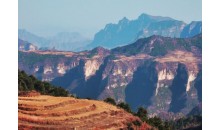 黃崖洞在山西省黎城縣境內(nèi),位于太行山脈的北端,海拔多在1500-2000米,地殼相對運動產(chǎn)生的巨大能量,把這里的硬紅石英砂巖、頁巖層組成的山岳切出道道峽谷,峭壁連綿數(shù)十公里,拔地而起,直沖云霄。這種獨特而壯觀的地貌,與舉世聞名的美國科羅拉多大峽谷可以說有異曲同工之妙。而且,這里的山體和地形以及巖石的質(zhì)地都比較適合攀巖運動。
