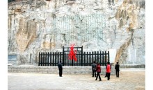 《水泊梁山記》是著名書畫大師范曾2002年專為水泊梁山風(fēng)景區(qū)撰寫。先生懷著對英雄故里的一腔深情,慷慨揮毫、步其先人范仲淹《岳陽樓記》韻,全文368字,描述了水泊梁山河岳闊峻、草木蕭森的雄奇景象?!端戳荷接洝反笮湍ρ率?,通高7米、長14米,距地面10余米,單字最大55厘米見方,最小字30厘米見方,通篇368字占地近100平方米,氣勢恢弘、蔚為大觀,形成了南有《岳陽樓記》、北有《水泊梁山記》的文化格局。為旅游勝地水泊梁山再添景觀,現(xiàn)為水泊梁山風(fēng)景區(qū)的主要景點之一。與梁山粗獷豪放的山體及周圍環(huán)境交融,深化了景區(qū)的水滸文化內(nèi)涵,成為進(jìn)入梁山風(fēng)景區(qū)山寨景區(qū)的標(biāo)志性景觀,其所在廣場,亦成為在梁山舉行的與水滸、旅游有關(guān)的大型集會的場所之一。