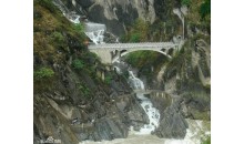 虎跳峽,中國最深的峽谷之一。在云南省玉龍納西族自治縣(原麗江納西族自治縣)龍蟠鄉(xiāng)東北。峽谷長16公里,南岸玉龍雪山主峰海拔5,596米,北岸中甸雪山海拔5,396米,中間江流寬僅30~60公尺?;⑻鴯{的上峽口海拔1,800公尺,下峽口海拔1,630公尺,兩岸山嶺和江面相差2,500~3,000公尺,谷坡陡峭,蔚為壯觀。