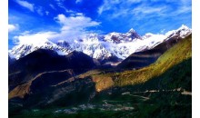 貢嘎山(Minya Konka)位于四川省康定以南,是大雪山的主峰。周圍有海拔6,000公尺以上的山峰45座,主峰更聳立于群峰之巔,海拔7,556公尺。高出其東側(cè)大渡河6,000公尺,被喻為「蜀山之王」。主峰由花崗閃長巖組成,受海洋季風(fēng)影響,雪線海拔4,600~4,700公尺,冰川發(fā)育規(guī)模較大。東坡最大的海螺溝冰川長14.2公里,末端下達(dá)2,850公尺,已落入森林帶內(nèi),在長期冰川作用下,山峰發(fā)育為錐狀大角峰,周圍繞以60°~70°的峭壁,攀登困難。1932年,美國探險隊攀登成功。中國大陸登山隊于1957年6月到達(dá)峰頂。