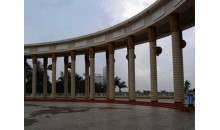 湛江海濱公園位于霞山區(qū)東北角海濱,這里有細(xì)白的沙灘、湛藍(lán)的海水、挺拔的椰樹,如茵的芳草,鮮艷的花卉。富有亞熱帶海洋風(fēng)光,被稱為湛江的“城市客廳”。時(shí)代廣場就是公園的大門。大門為歐式建筑風(fēng)格,由二十根圓柱頂起一弧形柱廊,上方鑲嵌著九幅漢白玉浮雕,浮雕描繪了湛江百年歷史,廣場地面用紅、褐、灰三色馬賽克拚成一幅世界地圖。