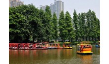 流花湖公園占地54.43公頃,其中湖水面積占60%,綠化占陸地面積88%。流花湖公園現(xiàn)址相傳是晉代芝蘭湖,后成為菜田。1958年市政府為疏導(dǎo)街道水患,組織全市人民義務(wù)勞動,建成流花湖等四個人工湖,后辟為公園,除原有蓄水防洪功能外,還是集游覽、娛樂、休憩功能為一體的大型綜合性公園。公園以棕櫚植物、榕屬植物、開花灌木及開闊的草坪、湖面與輕巧通透的嶺南建(構(gòu))筑物相互配合,形成具有強烈南亞熱帶特色的自然風(fēng)光。