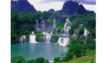 德天瀑布位于中越邊境廣西大新縣碩龍鎮(zhèn),為國家特級景點(diǎn)。橫跨中國和越南兩個國家,排在巴西-阿根廷之間的伊瓜蘇大瀑布、贊比亞-津巴布韋之間的維多利亞瀑布以及美國-加拿大的尼亞加拉瀑布之后,是世界第四大、亞洲第一大跨國瀑布。它起源于廣西靖西縣歸春河,終年有水,流入越南又流回廣西,經(jīng)過大新縣德天村處遇斷崖跌落而成瀑布。