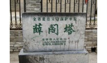 薛閣塔在安徽亳州老城東南,是一座磚塔。直椎式八角開(kāi),共七層,高34.15米,周圓23.36米。塔座由八塊青石奠基。塔一二層為仿木結(jié)構(gòu),每角砌磚為方柱,高3.5米。柱上仿高50公分。仿上為塔檐、上并飾以斗拱、昆蟲(chóng)、鳥(niǎo)卉花紋,登塔門(mén)面向東北,有螺旋式臺(tái)階,塔室為一個(gè)面南的小龕,可能是供俸神象用的,現(xiàn)空無(wú)一物。