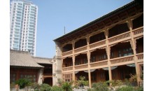 東公館位于甘肅臨夏市城東南角,占地面積50余畝,1945年建成。是原國民黨第四十集團(tuán)軍副司令、柴達(dá)木屯墾督辦馬步青的私邸。館內(nèi)建筑全系磚木結(jié)構(gòu),四座正院及附屬設(shè)施呈“田”字形布局,四座院落毗鄰處有天井一處,四角有門通向四個院落,天井正北為歇山式三屏并列一字形大影壁,壁心有回族磚雕藝人綻成元的磚雕名作《江山圖》,是河州磚雕藝術(shù)的代表.