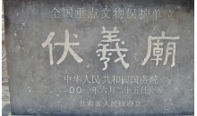 伏羲廟本名太昊宮,俗稱人宗廟,在甘肅省天水市城區(qū)西關(guān)伏羲路。一九六三年人民政府公布為甘肅省重點文物保護(hù)單位。伏羲廟臨街而建,院落重重相套,四進(jìn)四院,宏闊幽深。廟內(nèi)古建筑包括戲樓、牌坊、大門、儀門、先天殿、太極殿、鐘樓、鼓樓、來鶴廳共10座;新建筑有朝房、碑廊、展覽廳等共6座。新舊建筑共計76間。整個建筑群坐北朝南。牌坊、大門、儀門、先天殿、太極殿沿縱軸線依次排列,層層推進(jìn),莊嚴(yán)雄偉。