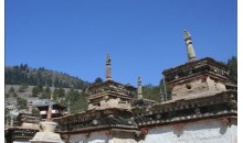 卡瑪多塔林位于類烏齊縣國道317線右側(cè),距縣城25公里。塔林依山位傍水、風(fēng)景秀麗、古木參天、蒼松翠柏、四季常青。在蔥郁翠柏中有一座別致的小經(jīng)堂,主供蓮花生大師像,左右各豎有幾根高大的轉(zhuǎn)經(jīng)筒。傳說,過去這兒有108個塔,現(xiàn)已恢復(fù)和修建的塔有幾十座。其造型各異,別具一格,既有要求嚴(yán)格的八佛塔,也有方形怪塔;既有幾米高的大塔,也有不到三米的小塔。