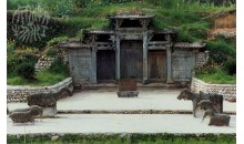 鮮于璜墓位于天津城北武清縣高村鄉(xiāng)蘭城村東南。鮮于璜在東漢安帝初年任雁門太守,食俸2000石,死于安帝延光四年(125),終年81歲。其墓早年被盜,1977年發(fā)掘時,尸骨和隨葬品均凌亂。墓為中型磚室墓,通長14.7米。雖曾被盜,但發(fā)掘時仍獲銅、玉、石、陶等隨葬品70多件,有不少罕見珍品。有一件通高85厘米的陶倉,準確塑出建筑結(jié)構(gòu)和扛糧入倉的人物。