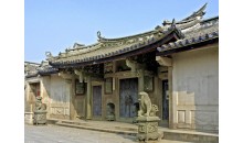 琳瑯滿目的建筑裝飾,使整座建筑物顯得更加富麗堂皇,首進(jìn)門樓前理分置精致石獅一對(duì),門樓屋架為雙面鏤空石雕。而最令人嘆為觀止的還是鑲嵌于門樓石壁上的四幅石雕.這四幅石雕分別以土農(nóng)工商,漁樵耕讀,花鳥蟲魚為題材,每幅石刻都很好地運(yùn)用了“之”字形的構(gòu)圖,將不同時(shí)空的人、事、物集中在同一畫面,濃縮故事情有節(jié)。表現(xiàn)最富戲劇性的瞬間。