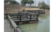 九曲橋九曲十八彎,且每個彎曲的角度大小不一,有大于90度直角的,也有小于90度直角的。九曲橋如今的橋面為花崗石板,每一彎曲處一塊石板上均雕刻一朵季節(jié)性花朵,如正月水仙、二月杏花、三月桃花……直到十二月臘梅;并在九曲橋頭尾的兩塊石板上各雕刻一朵荷花。在湖心亭茶樓門前的一段橋面,中間雕刻一朵荷花,四角則分別雕刻彩云。