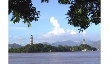 新豐江水庫(kù)大壩距河源市區(qū)6公里,為混凝土結(jié)構(gòu),高124米,壩頂寬為5米,長(zhǎng)度440米,是世界上第一座經(jīng)受六級(jí)地震考驗(yàn)的超百米高混凝土大壩。溢洪段設(shè)有3孔。1997年7月11日至14日、8月9日至16日,大壩兩次開(kāi)閘泄洪。泄洪時(shí),湖水從閘奔瀉而出,伴隨著雷鳴般的呼嘯聲,卷起千堆雪,仿似一幅蛟龍鬧海圖,十分壯觀。