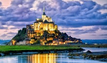 圣米歇爾山(Mont-Saint-Michel)位于法國(guó)諾曼底附近,是距海岸約1公里的巖石小島,為法國(guó)旅游勝地,也是教徒的朝圣地,山頂建有著名的圣米歇爾修道院。