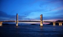 友誼大橋澳門“友誼大橋”,工程原稱新澳氹大橋,1994年初建成通車。位于舊大橋(嘉樂庇總督大橋)以東,連接澳門半島新口岸水塘北角(外港碼頭處)與氹仔北安碼頭。橋?qū)?5米,設(shè)兩條雙線車道,中設(shè)分隔線,車道兩旁設(shè)1.5米寬的行人道。